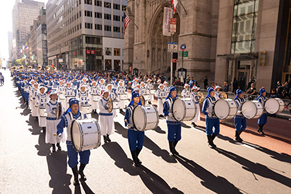 【大纪元2019年10月15日讯】(大纪元记者黄小堂纽约报导) 纽约哥伦布日大游行(Columbus Day Parade)是世界上最大的意大利美国文化的庆典之一,纪念哥伦布在1492年首次登上北美,同时宣扬意大利裔美国人和社区的传统文化。14日,曼哈顿第五大道上聚集超过4万名游行民众和100万的人潮围观。法轮大法天国乐团第二次参加该游行,威震全场,沿路观众欢呼叫好。