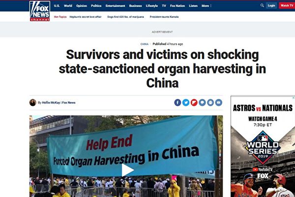 【大纪元2019年10月27日讯】(大纪元记者林南编译报导)10月26日,美国福克斯新闻(Fox News)刊登了一则题为“幸存者和受害者披露令人震惊的中共活摘器官行为”的文章。在文中,受访者们提供证据,表明中共以国家规模在中国强制摘取良心犯器官的行为长期存在,且至今仍在继续。今年5月,美国福克斯新闻11台,播出了近10分钟的深度报导,聚焦中共对法轮功长达20年的残酷迫害,引起了全球媒体广泛的关注。