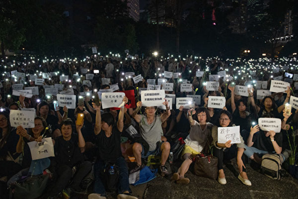 【大纪元2019年06月15日讯】(大纪元记者梁珍、柯婷婷香港报导)6‧12港警镇压数万抗议民众事件后第三天,一群香港妈妈们不满林郑月娥“母亲论”,星期五(14日)晚上在遮打花园集会,抗议香港政府血腥镇压,要求撤销《引渡条例》。大会晚上九点宣布,共有六千人集会。