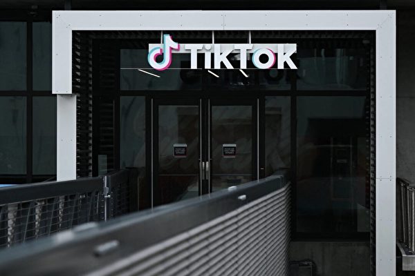 2023年3月16日,加州卡尔弗城(Culver City),TikTok社交媒体应用公司办公室外展示的TikTok徽标。(Patrick T. Fallon/AFP via Getty Images)
