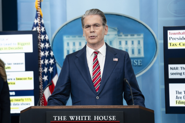 贝森特在周三(4月15日)的白宫新闻发布会上说:“美国财政部已致函两家中国银行。我不会透露这两家银行的名字,但我们告诉它们,如果我们能够证明有伊朗资金流经你们的账户,我们将实施二级制裁。”