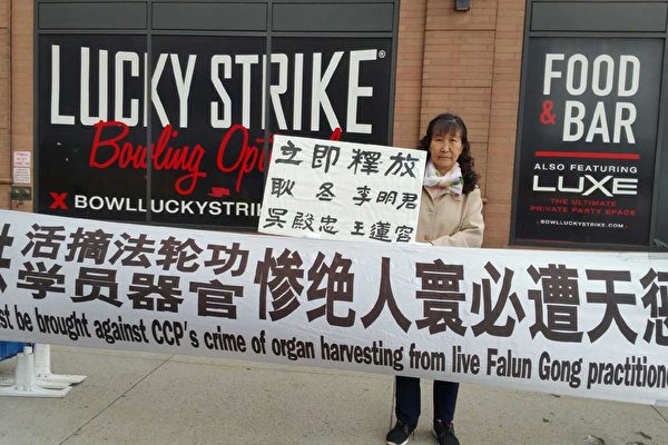 明慧网报导,当得知中共监狱对耿冬加重迫害后,耿冬的岳母、纽约法轮功学员赵玉琴每天站立于纽约中领馆外面街头,要求“立即无罪释放耿冬、李明君、吴殿忠、王莲荣”,抗议中共对法轮功学员的非人迫害。