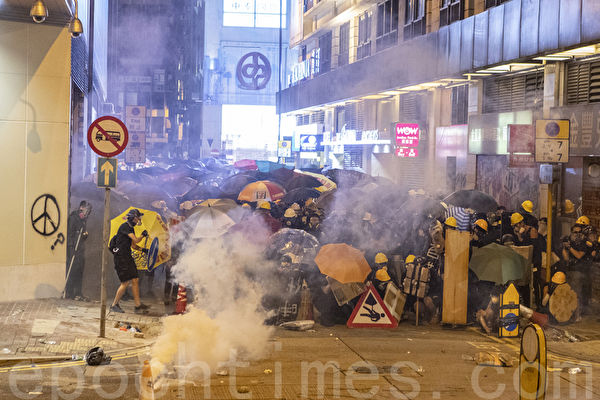 7.28遮打反警察暴力集会后,警察频繁发射橡胶子弹及催泪弹清场。(余钢/大纪元)