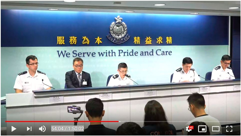 然而香港警方在14日例行的记者会上,被问到中共港澳办早前指暴力事件行为出现“恐怖主义苗头”时,香港警务助理处长麦展豪说,对于恐怖主义,香港有自己一套法例,大部分的示威者都是和平有序,虽有部分极端示威者的暴力行为不断升级,但两者不一样。
