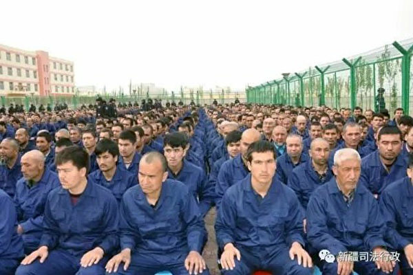 大量的维吾尔人及其他少数民族成员被关押在再教育营,图为被关押的维吾尔人。(新疆司法行政微博)