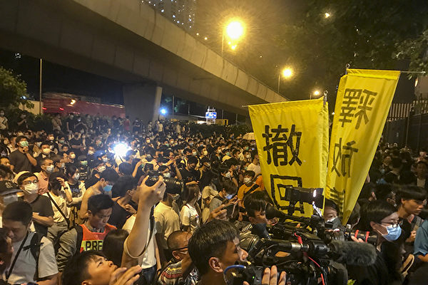 7月30日,港人自发到葵涌警署声援反送中被捕人士,并要求警方释放被捕人士。(余钢/大纪元)