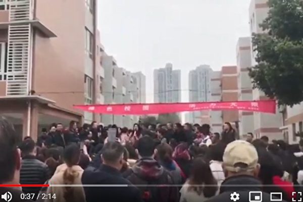 因食品安全问题,3月13日,四川省成都七中实验学校大批家长到学校门外抗议示威,遭到当局暴力镇压。(视频截图)