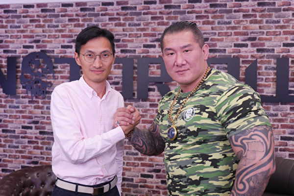 香港立法会议员朱凯迪(左)受邀参加网路名人“馆长”陈之汉(右)的直播,会中两人都呼吁台湾民众9月29日当天,若条件允许的话可以参加“929撑港反极权”游行。(陈冠均/大纪元)