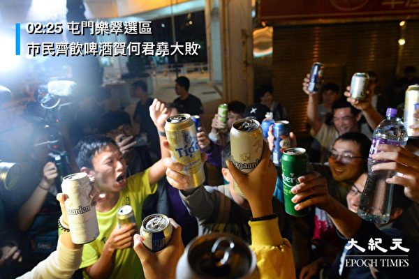 何君尧以1200票之差大败 民众开香槟庆贺