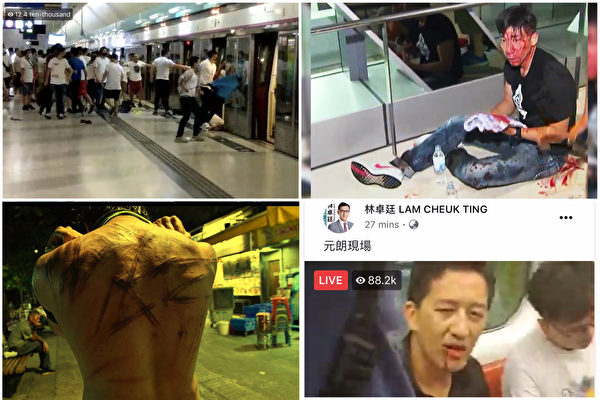 【大纪元2019年07月22日讯】(大纪元记者周建鹏综合报导)7‧21日43万人反送中大游行后,中共出动黑社会。当晚元朗发生多宗反修例市民遇袭事件,其中在元朗西铁站一批身穿白衣、戴口罩、手持武器的暴徒,攻击示威者,更进入车厢施袭,民主党立法会议员林卓廷和《立场新闻》记者受伤住院。