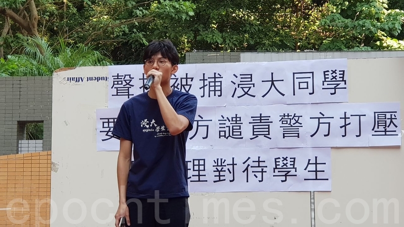 数十名学生响应学生会号召5日在校内的赛马会广场举行集会,声援邓泽旻。港大、科大、理工等院校的编委会亦有代表到场。他们批评警方无理拘捕学生记者,要求校方谴责警方打压新闻自由。