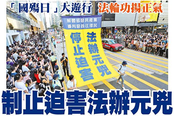 【大纪元2018年10月02日讯】(大纪元记者林怡香港报导)10月1日是中共建政69周年,但官方所谓的“国庆”,在民间则被视为中共残害人民、摧毁中华传统文化道德、并带来连串民族灾难的“国殇”。香港法轮功学员当日举行盛大的反迫害集会游行,要求制止中共对法轮功持续19年的残酷迫害,并法办江泽民等迫害元凶,获各界政要名人声援。