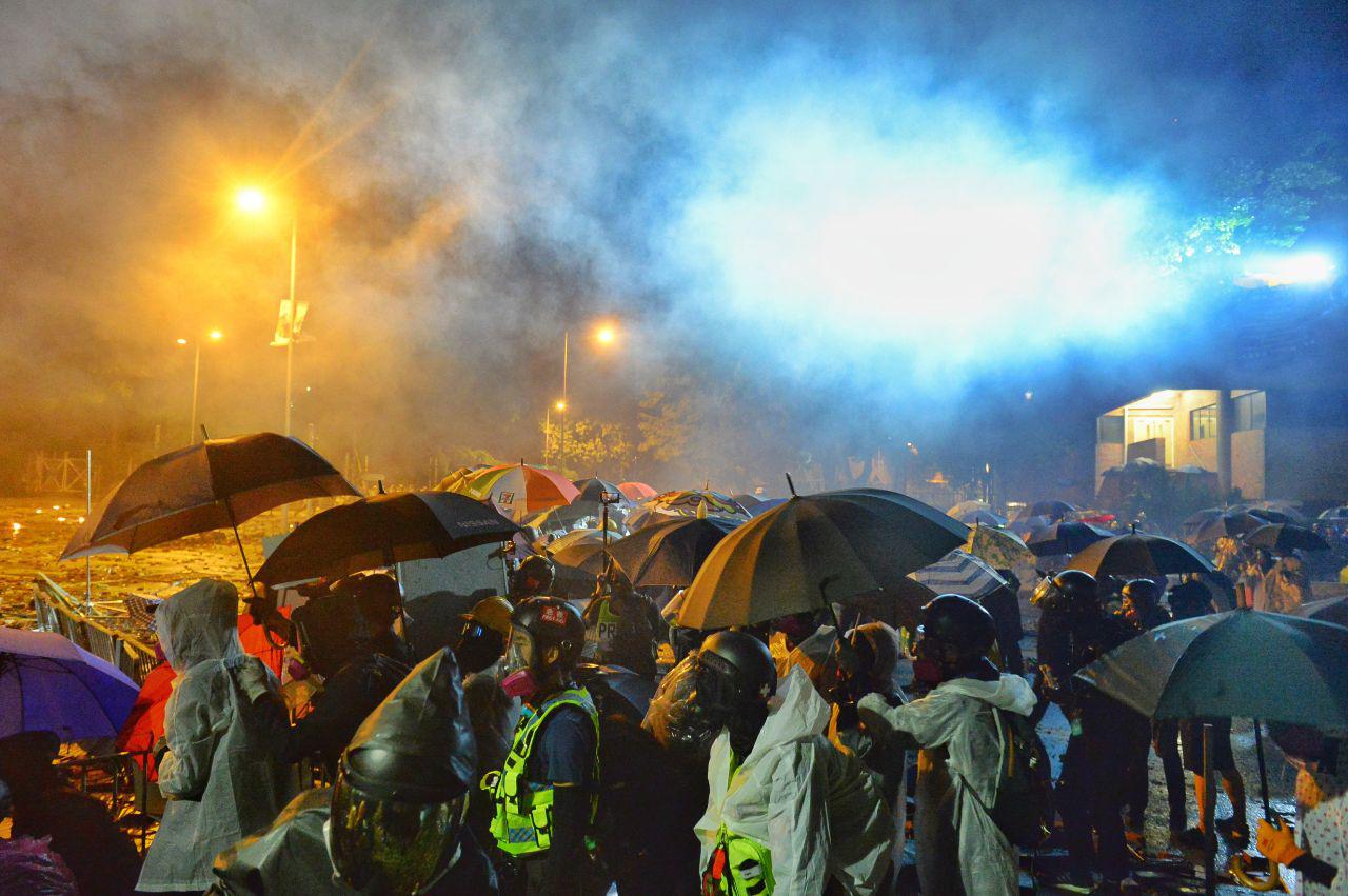 理大在被围困的几天中,呈现一片狼籍景象。曾经热闹的校园,现在寂静无声。苍蝇围着垃圾山飞来飞去。地面上堆着未使用的汽油弹和催泪瓦斯罐。
