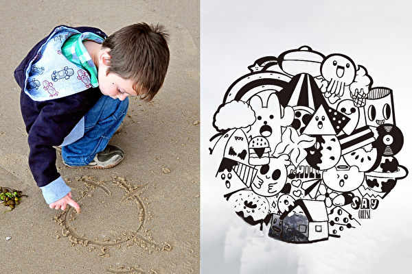 小时候上课时不专心听课,却只顾着自己画自己的,这时被老师发现后(我们或许都经历过,下场肯定不好),从此冒出来的那一点艺术火花就此灭尽了!不过,幸好英国的9岁男孩遇到开明的父母,他正开心的在餐厅的一大片白墙上作画呢!