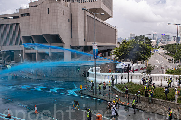 【大纪元2019年09月01日讯】(大纪元记者张婷综合报导)8月31日,香港民众继续走上街头,以各种形式继续“反送中”抗议。与往日不同,警方这次动用水炮车向抗议民众首次喷射蓝颜色液体水柱,引发极大关注。媒体纷纷评论港府动用“蓝色水”的动机。