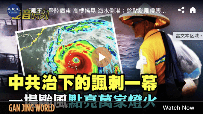 【佳音时刻】中共治下讽刺一幕 台风点亮万家灯火 今日焦点:“风王”登陆广东,高楼摇晃,海水倒灌;盘点台风侵袭时,中共治理下的奇葩事;习近平访问新疆,两军头缺席, […]